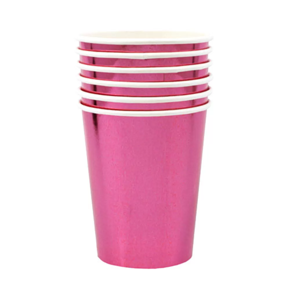 - Стаканы розовые одноразовые бумажные фольгированные, в наборе 6 стаканов.
