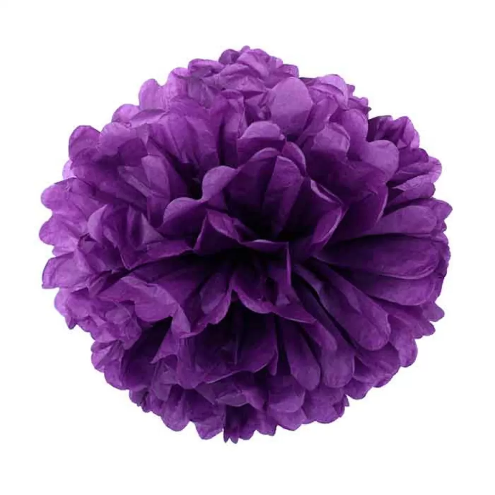 - Помпон бумажный фиолетовый 30 см. Бумажные помпоны не сдают позиций, их продолжают активно использовать для декора праздников и оформления витрин и интерьера.