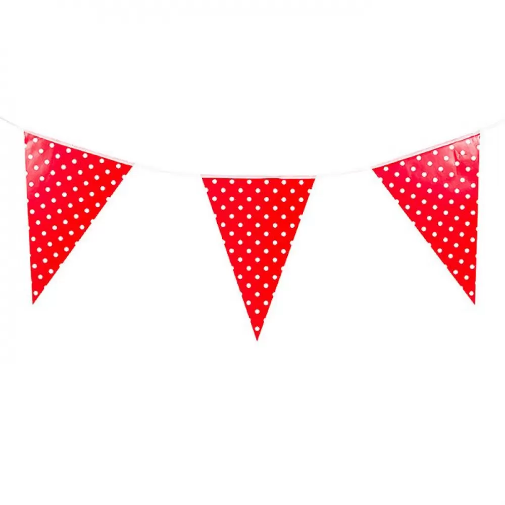 - Бумажные флажки на белой ленте, красные в белый мелкий горошек.