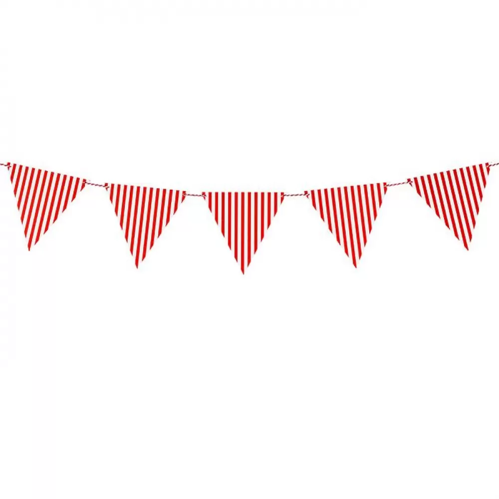 - Бумажная гирлянда Флажки, красная в белую полоску.