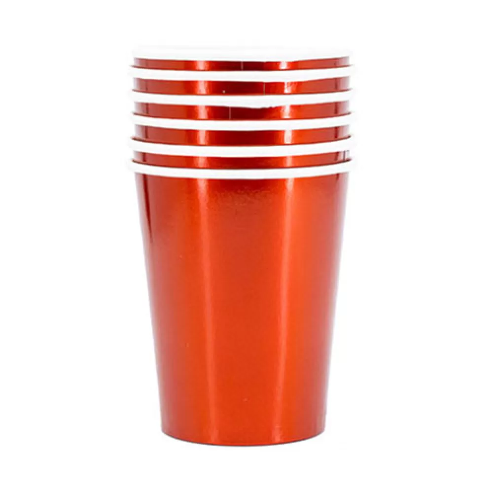 - Бумажные красные фольгированные стаканы, в наборе 6 штук.