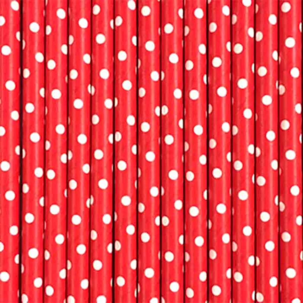- Экологичные красные в белый горошек бумажные трубочки для коктейля.