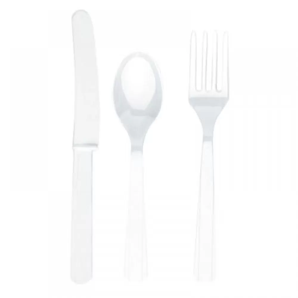 - В наборе 24 белых столовых прибора на 8 персон (нож, вилка, ложка - по 8 шт.).