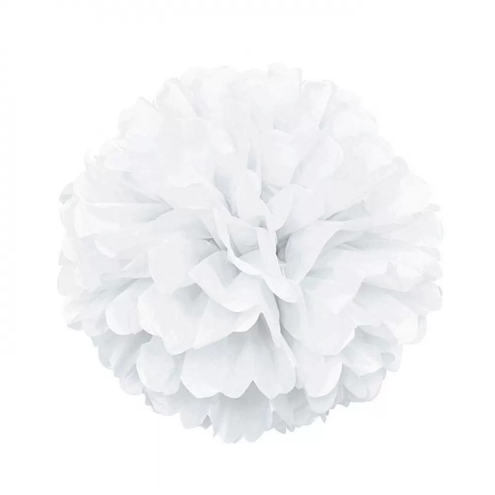- Помпон белый 40 см из бумаги тишью. Отличное изящное решение для украшения любых праздников.