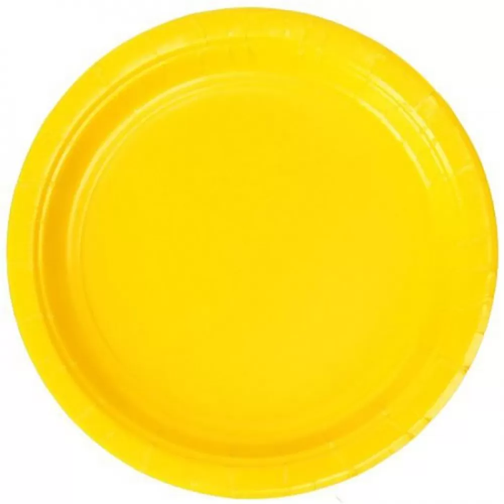 - Одноразовые желтые тарелки, в наборе 8 бумажных тарелок.