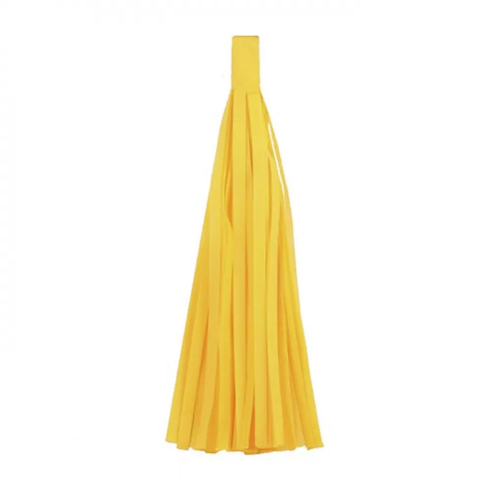 Ей очень просто украсить стены, стол или зону для фотосессии. Можно подобрать кисточки разных цветов на любой вкус. Гирлянду Тассел кисточки можно дополнить другими элементами желтой однотонной коллекции одноразовой посуды и праздничных аксессуаров. Кисточки тишью - очень красивый, и при этом бюджетный предмет декора.