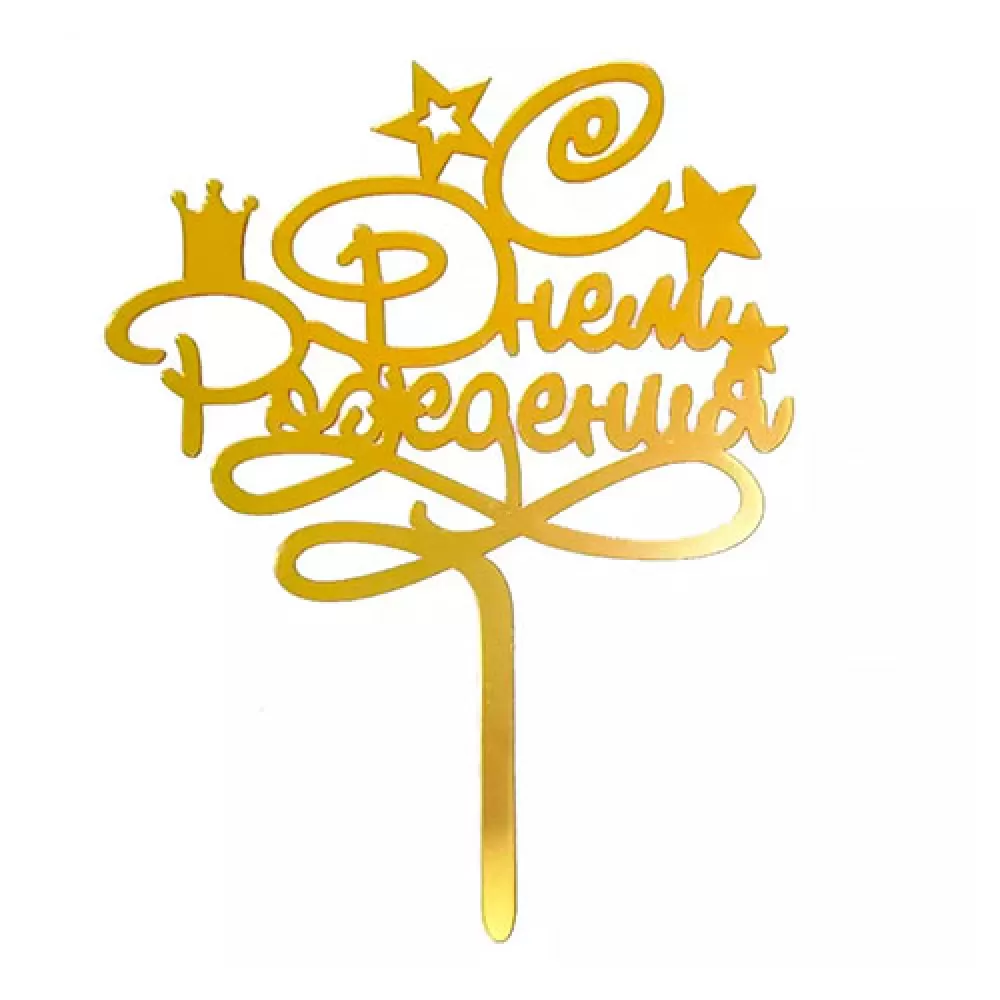 - Красивый золотой топпер для торта. Высота топпера около 15 см, ширина надписи 10 см.