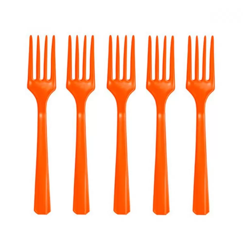 - В наборе 20 вилок из пластика оранжевого цвета.