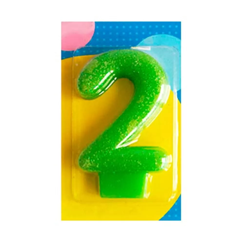 - Свеча Цифра 2 Блестящая для праздничного украшения десертов, торта или капкейков.