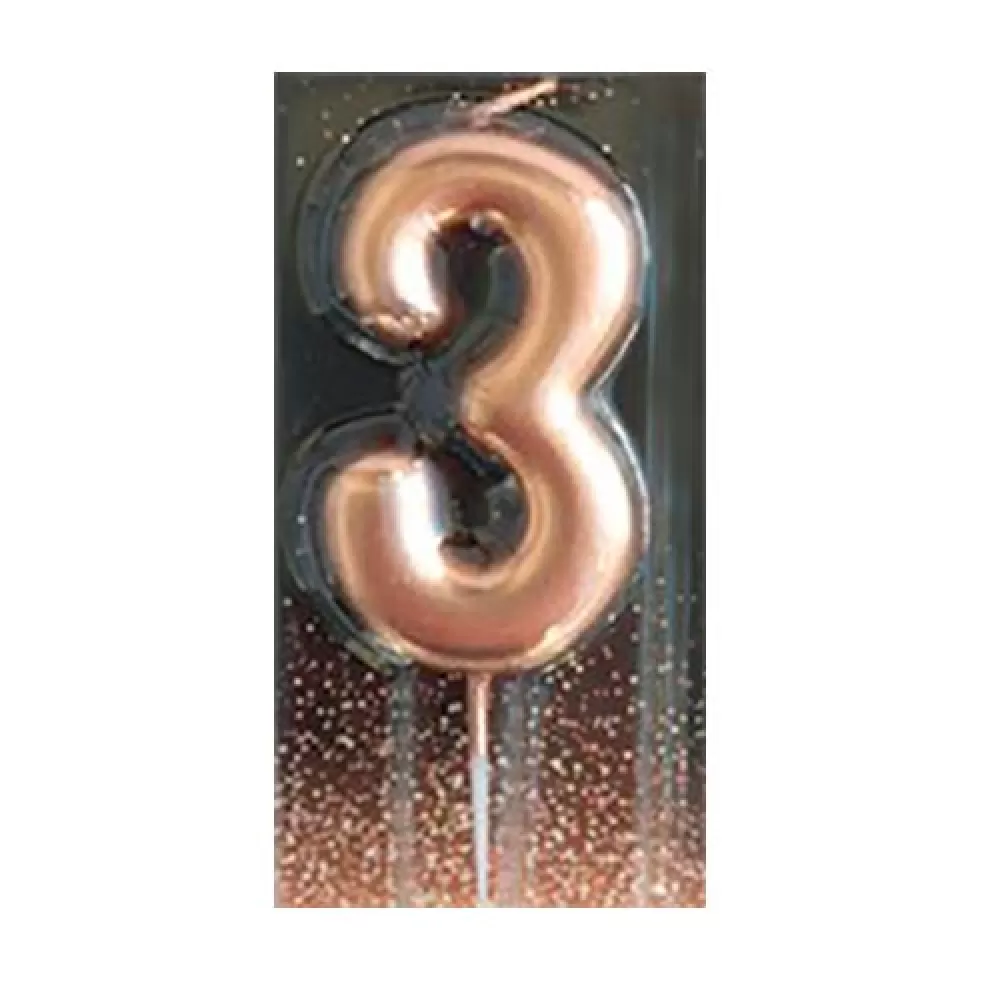 - Свеча-цифра 3 розовое золото для праздничного украшения торта.