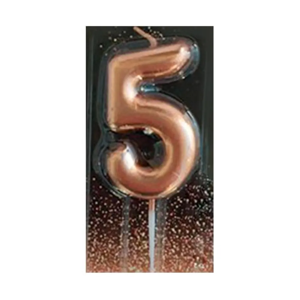 - Свеча для торта Свеча-цифра 5 блестящая, цвет - розовое золото.