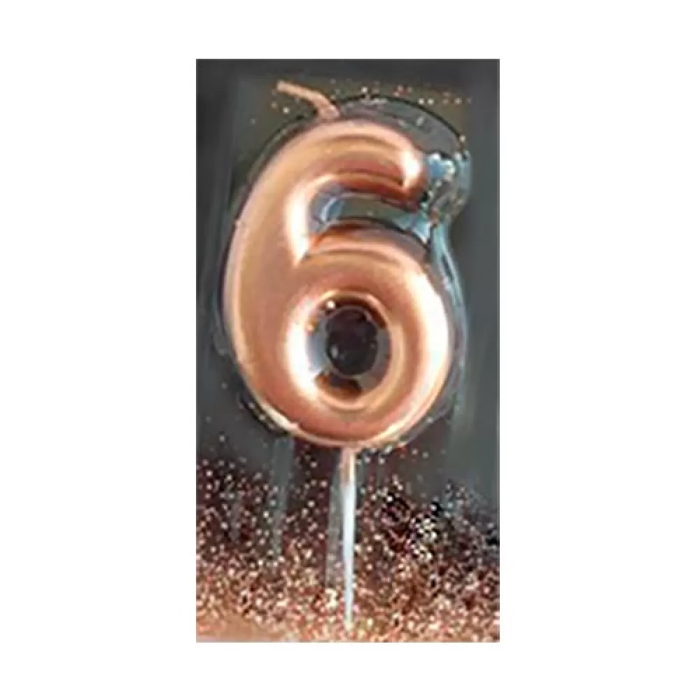 - Свеча для торта Цифра 6, цвет розовое золото.