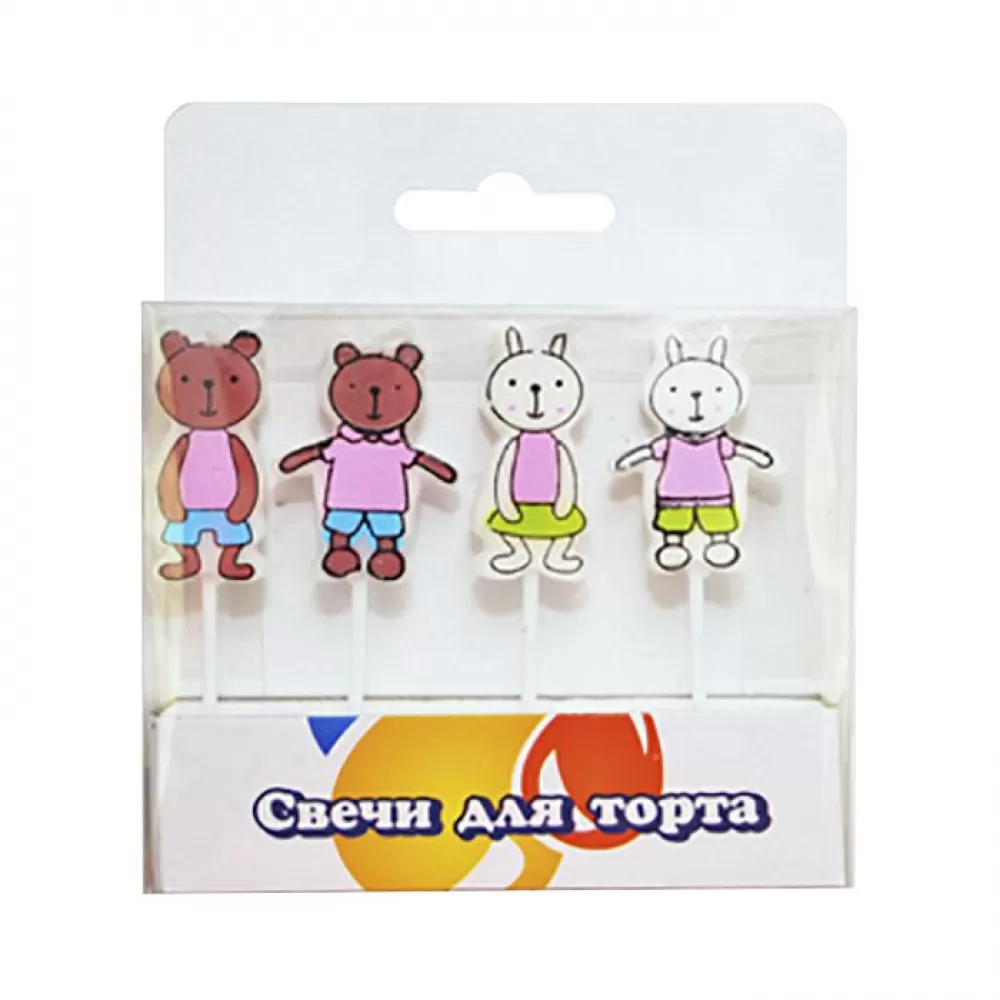 - Свечи «Мишки и Зайчики» (4 шт.) для праздничного украшения торта или капкейков.