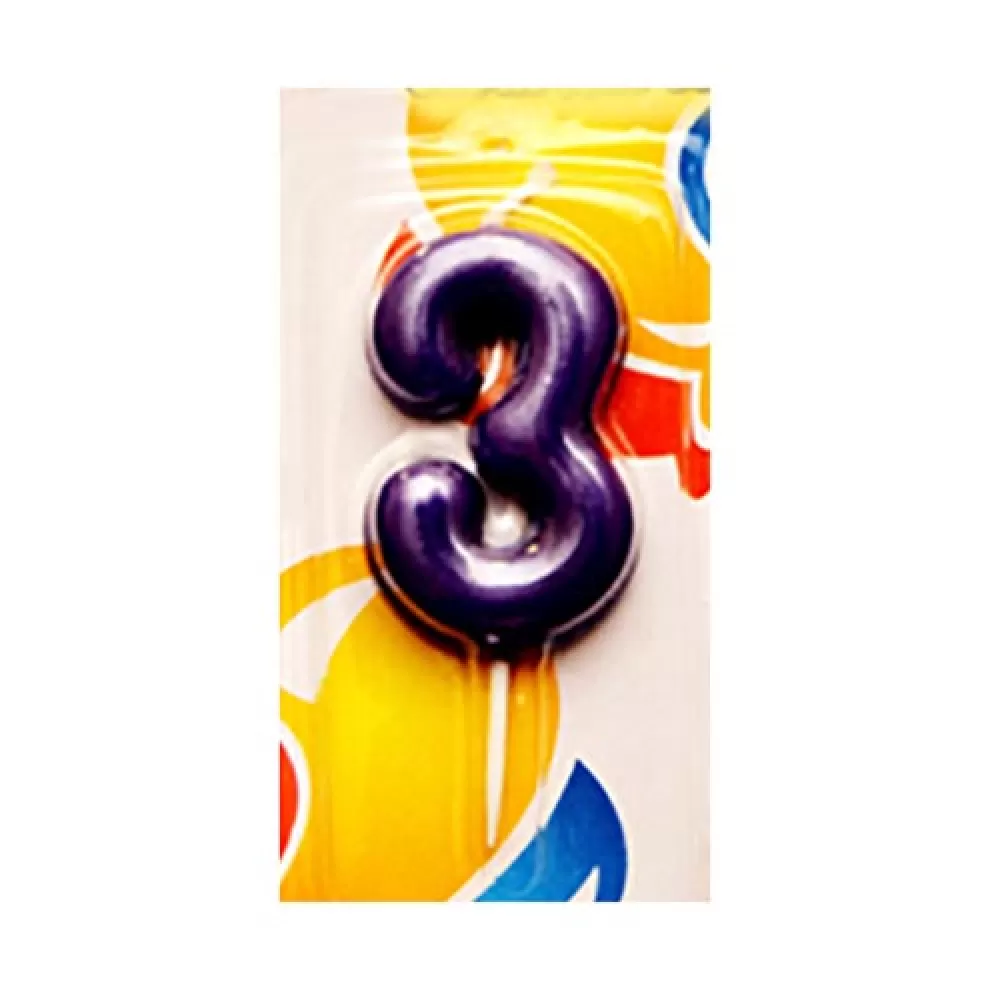 - Свеча Цифра 3 Яркая для праздничного украшения десертов, торта или капкейков.