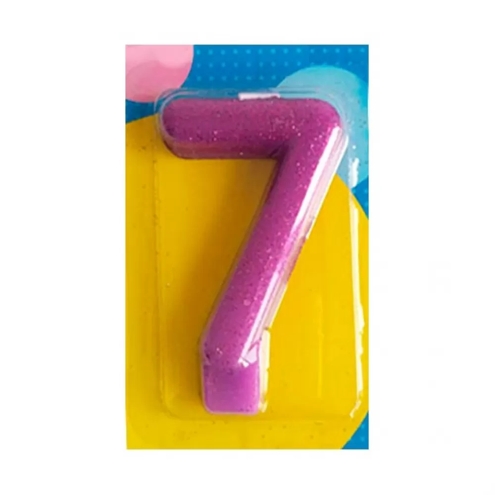 - Свеча Цифра 7 Блестящая для праздничного украшения десертов, торта или капкейков.