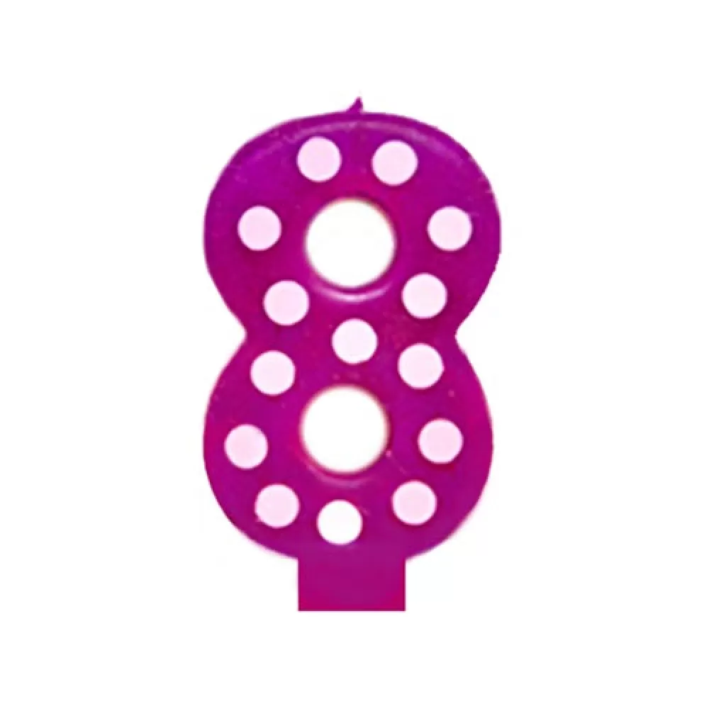 - Свеча Цифра 8 в горошек для праздничного украшения торта или капкейков.