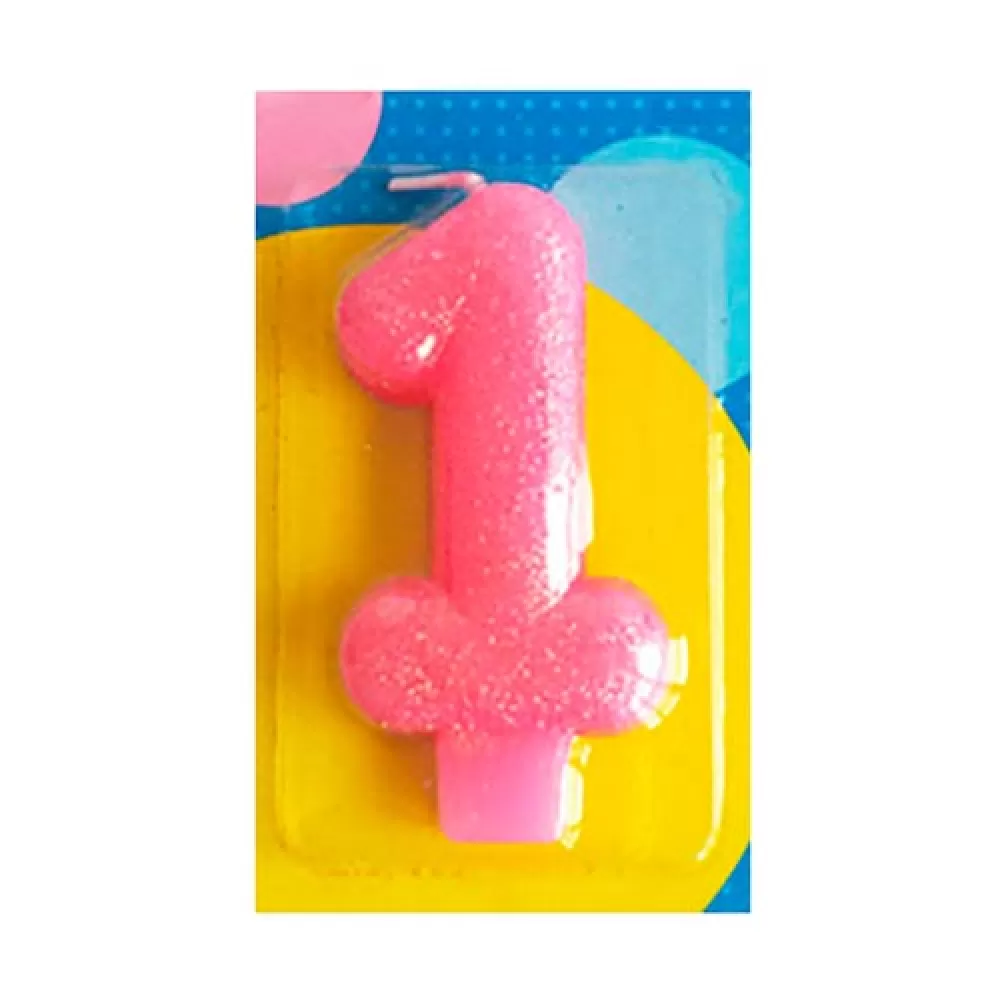 Свеча Цифра 1 Блестящая розовая