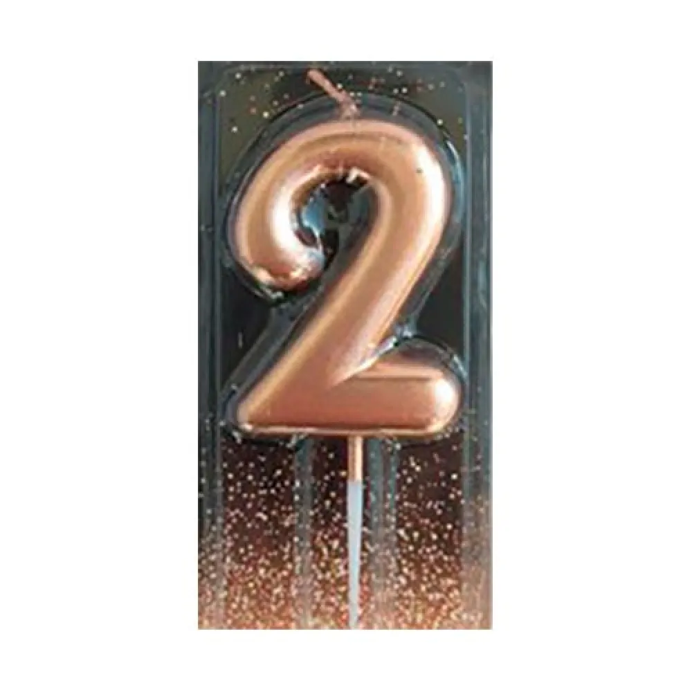 - Свеча-цифра 2 для торта блестящая, розовое золото.