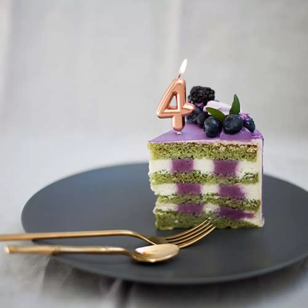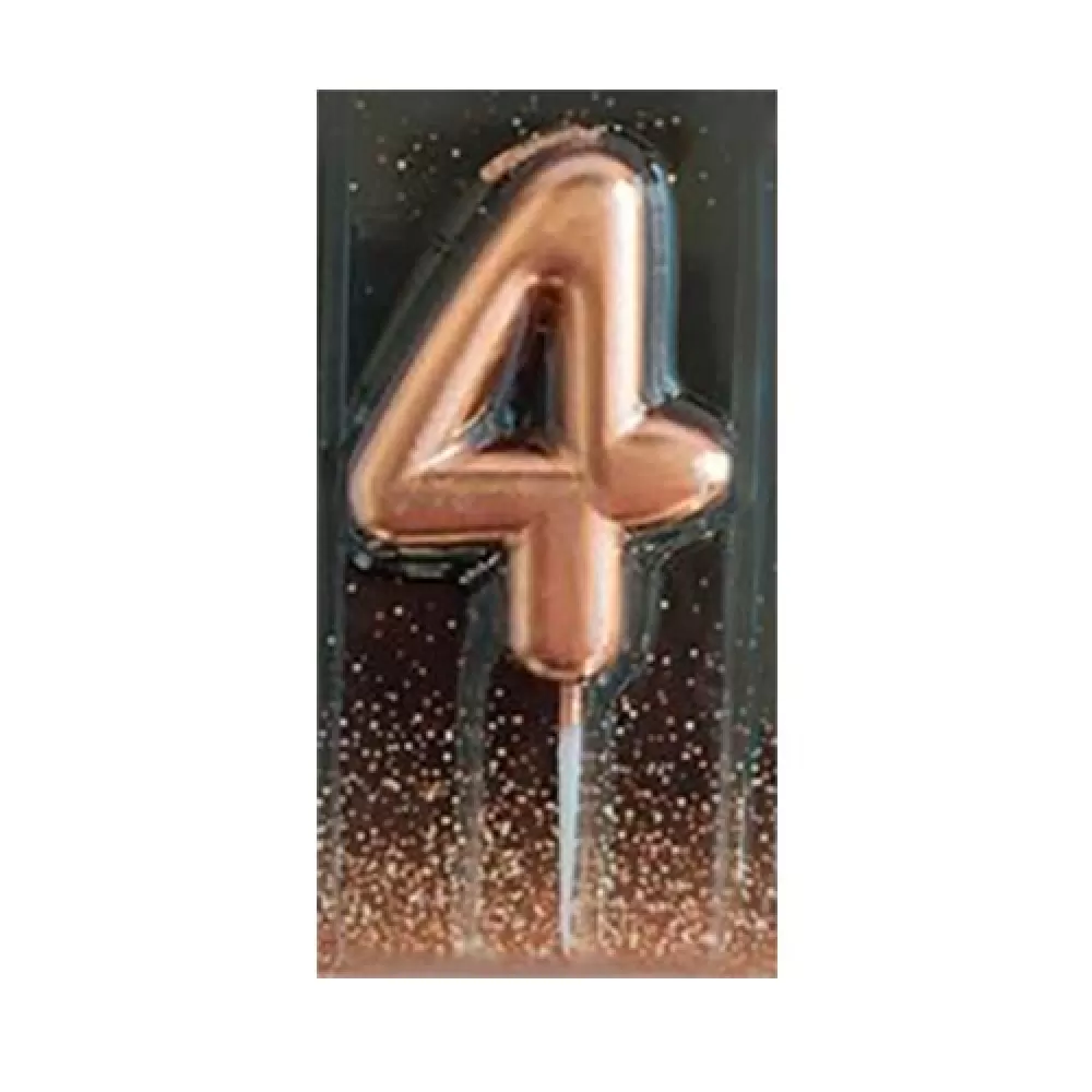 - Свеча-цифра 4 розовое золото для праздничного украшения торта.