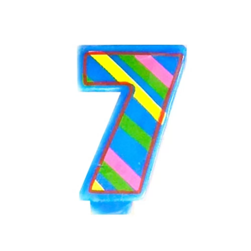 - Свеча Цифра 7 красочная для праздничного украшения торта или капкейков.