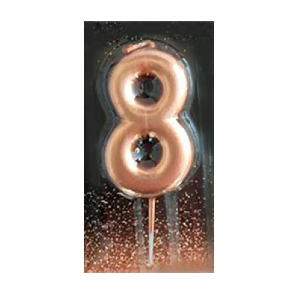 - Свеча Цифра 8 розовое золото для праздничного украшения десертов, торта или капкейков.