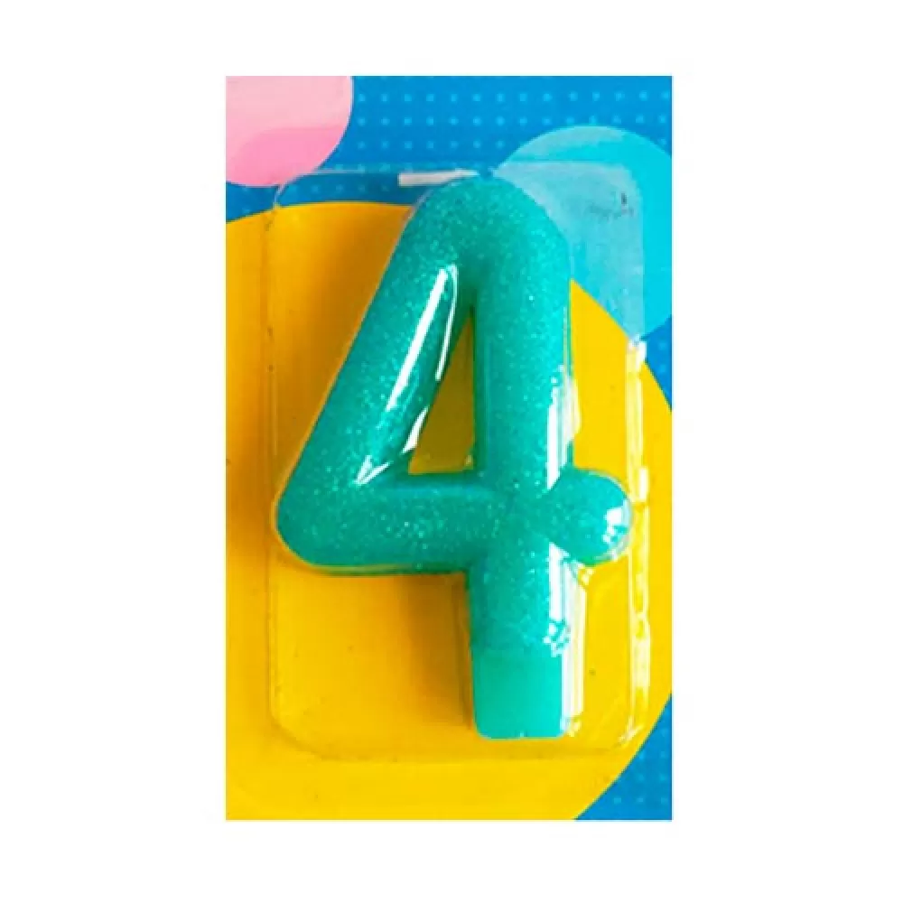 - Свеча Цифра 4 Блестящая для праздничного украшения десертов, торта или капкейков.
