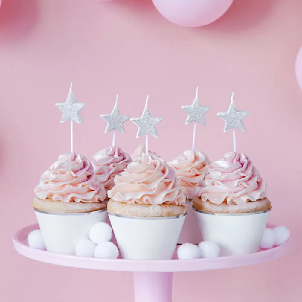 - Небольшие свечи-звездочки хорошо подойдут для украшения капкейков и других порционных десертов.