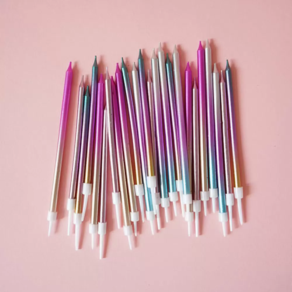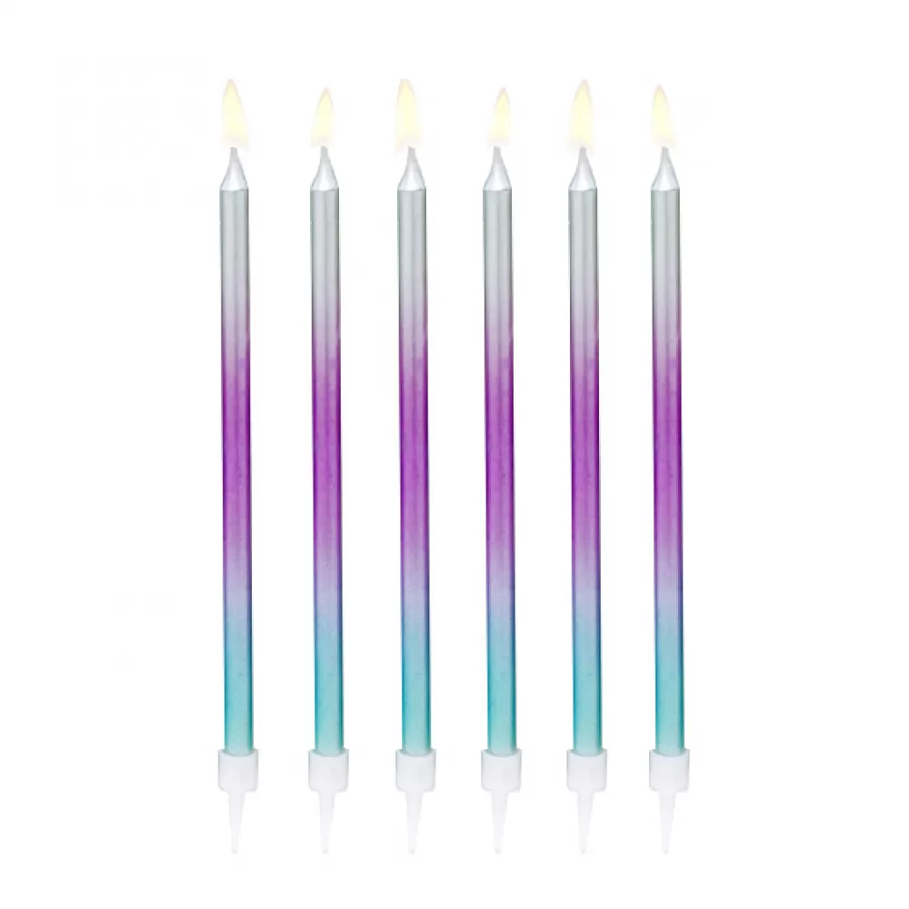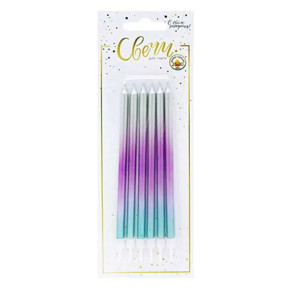 - Свечи для торта высокие металлизированные Градиент - серебро-розовый-синий цвет, с держателями