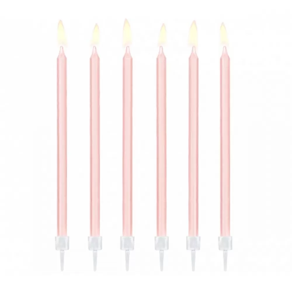 - Свечи высокие розовые с держателями (12 шт.) для праздничного украшения торта.