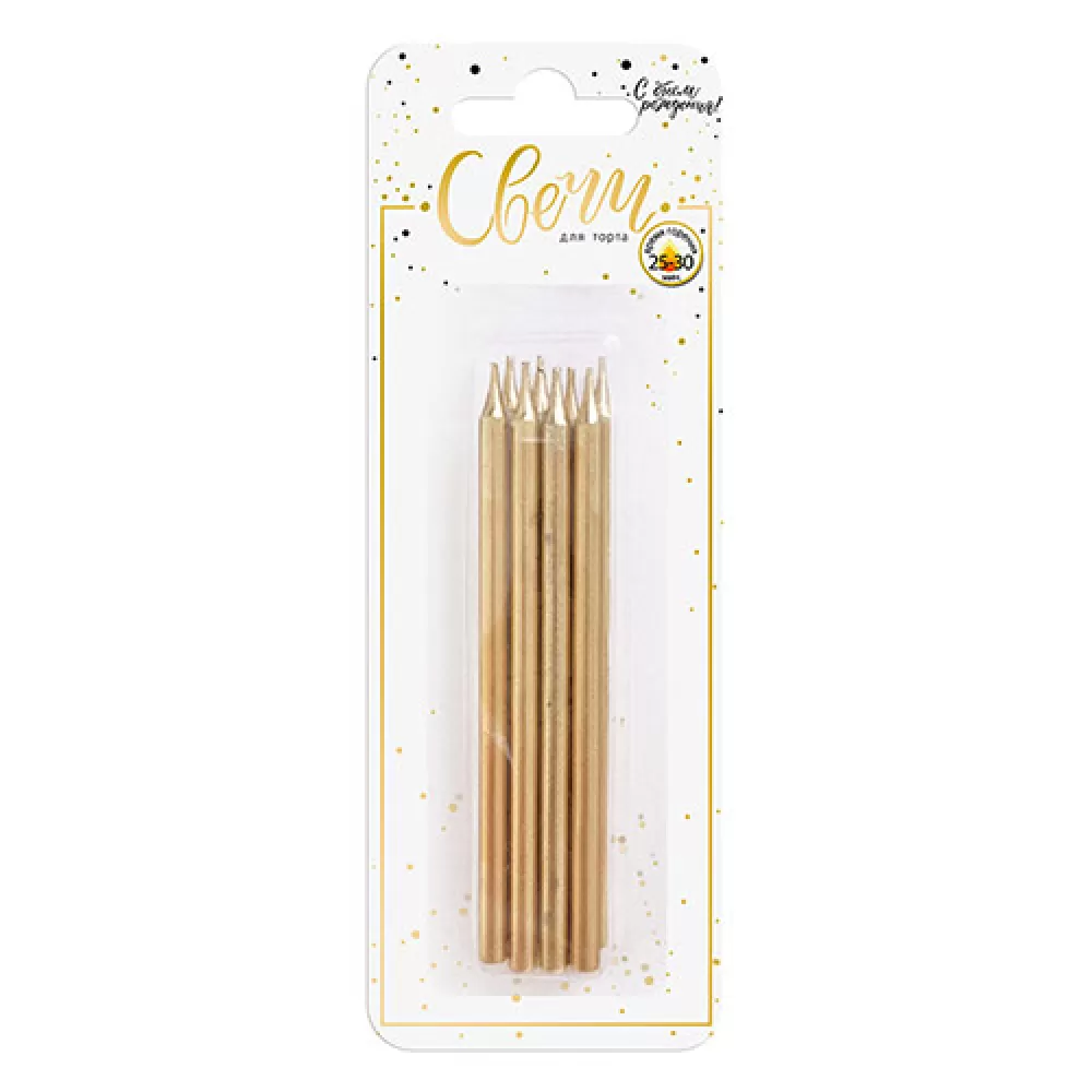 - Свечи золотые с держателями (8 шт.) для праздничного украшения торта.