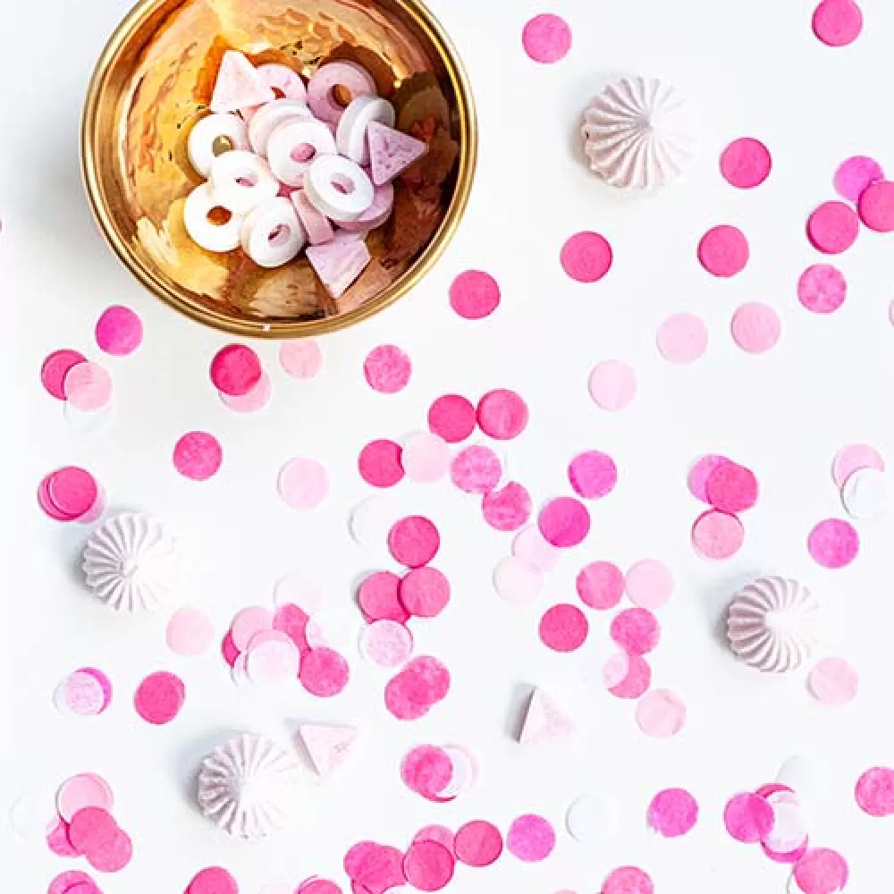 - Конфетти Микс розовые - набор разных по цвету и текстуре конфетти. Цвета конфетти в упаковке идеально подобраны - нежно-розовые и ярко-розовые конфетти из бумаги тишью, плюс белые тишью-конфетти.