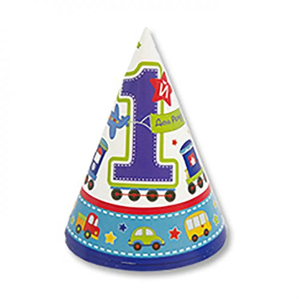 - Веселые колпачки для первого праздника мальчика - годовасия, коллекция All Aboard.