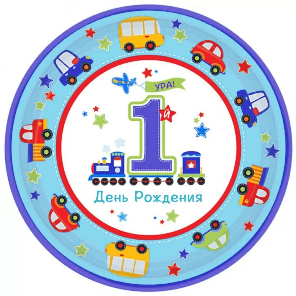 - Большие одноразовые бумажные тарелки с машинками и автобусами для первого праздника мальчика - годовасия, коллекция All Aboard.