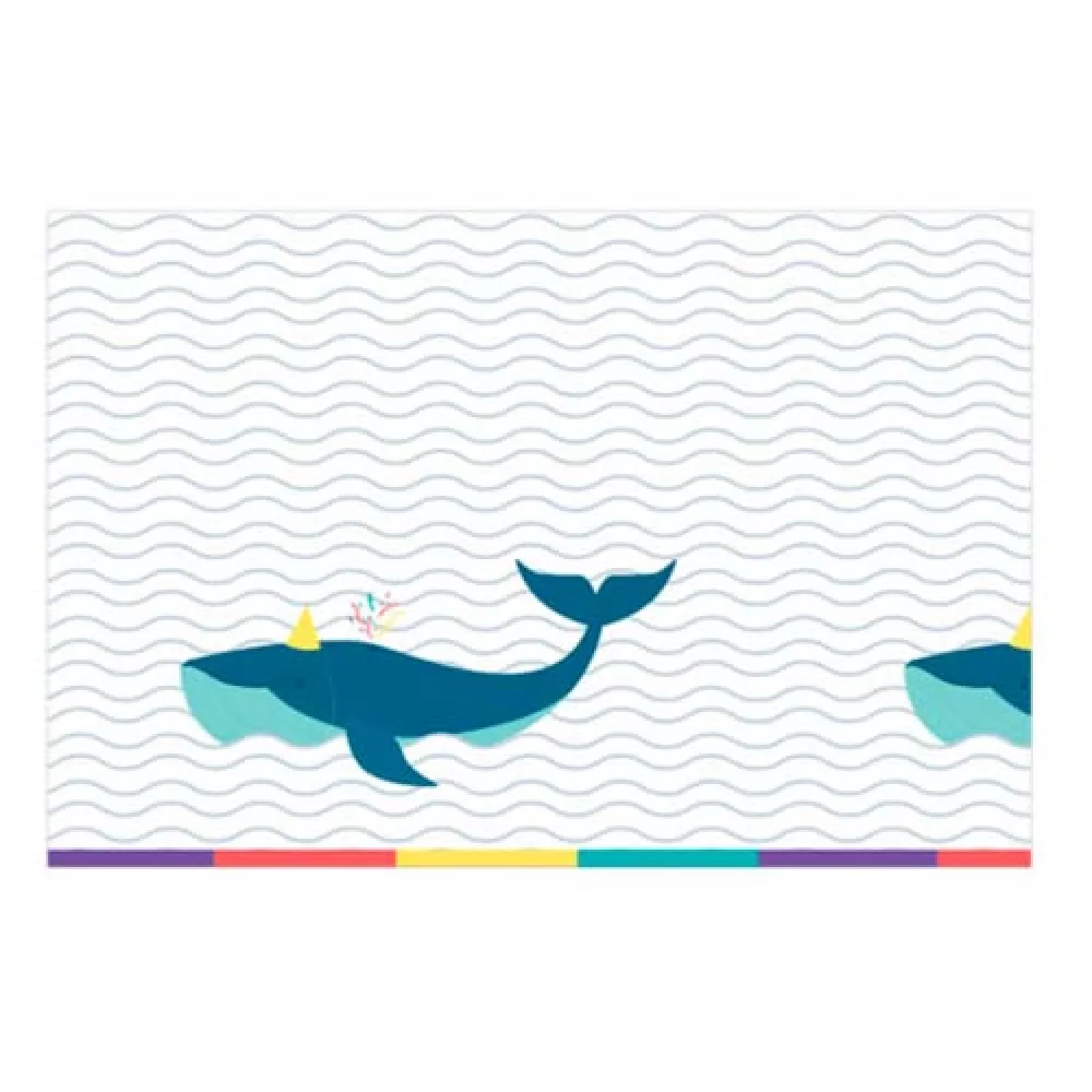 - Скатерть Арктика с веселыми китами в праздничных колпачках, размер 120х180 см. Материал-полиэтилен.