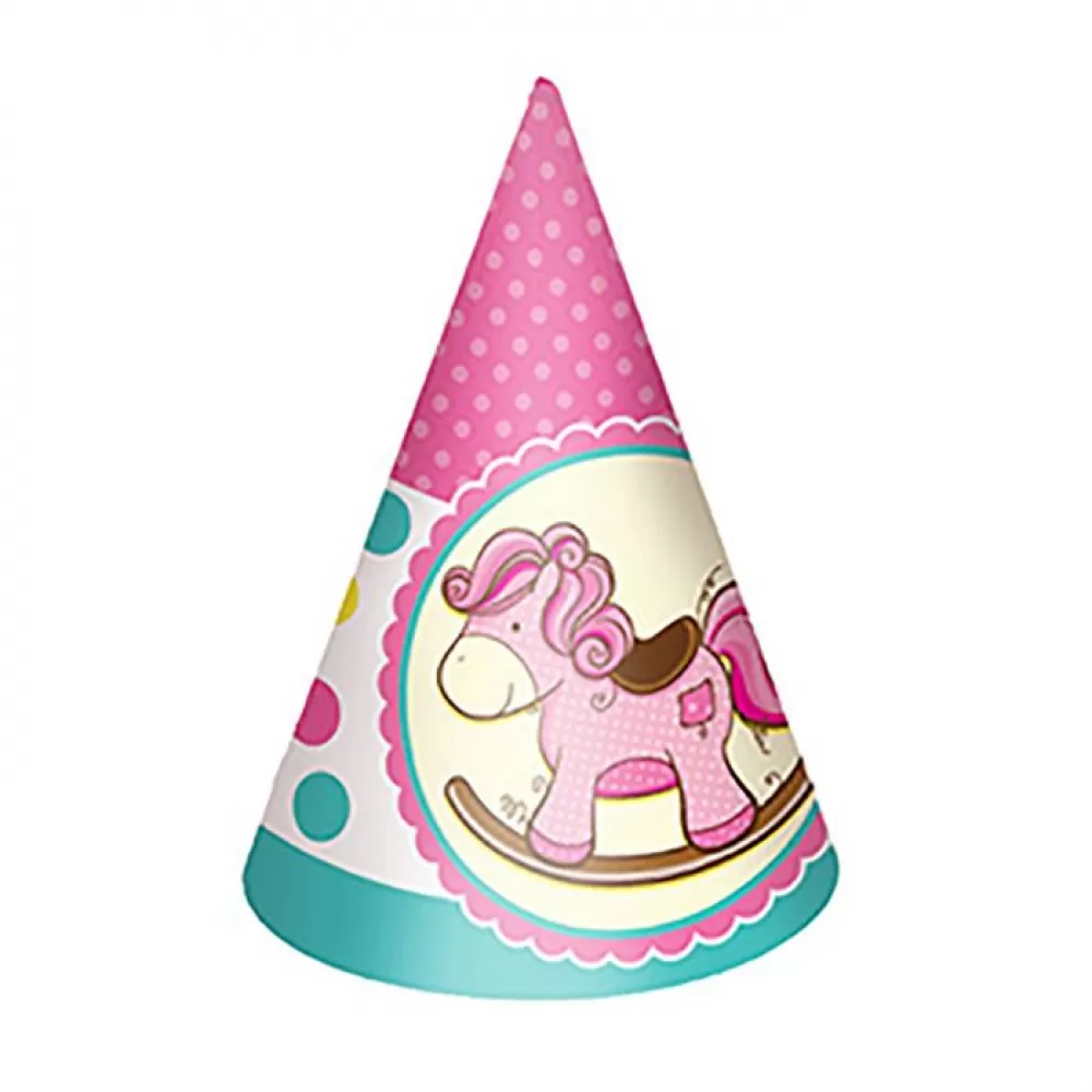 - В упаковке 6 колпачков с лошадкой в розовых тонах.