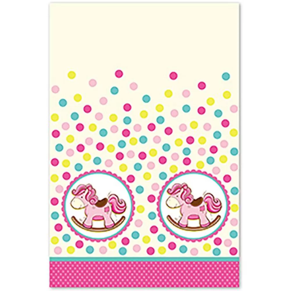 - Полиэтиленовая скатерть с принтом Лошадка в розовых тонах.