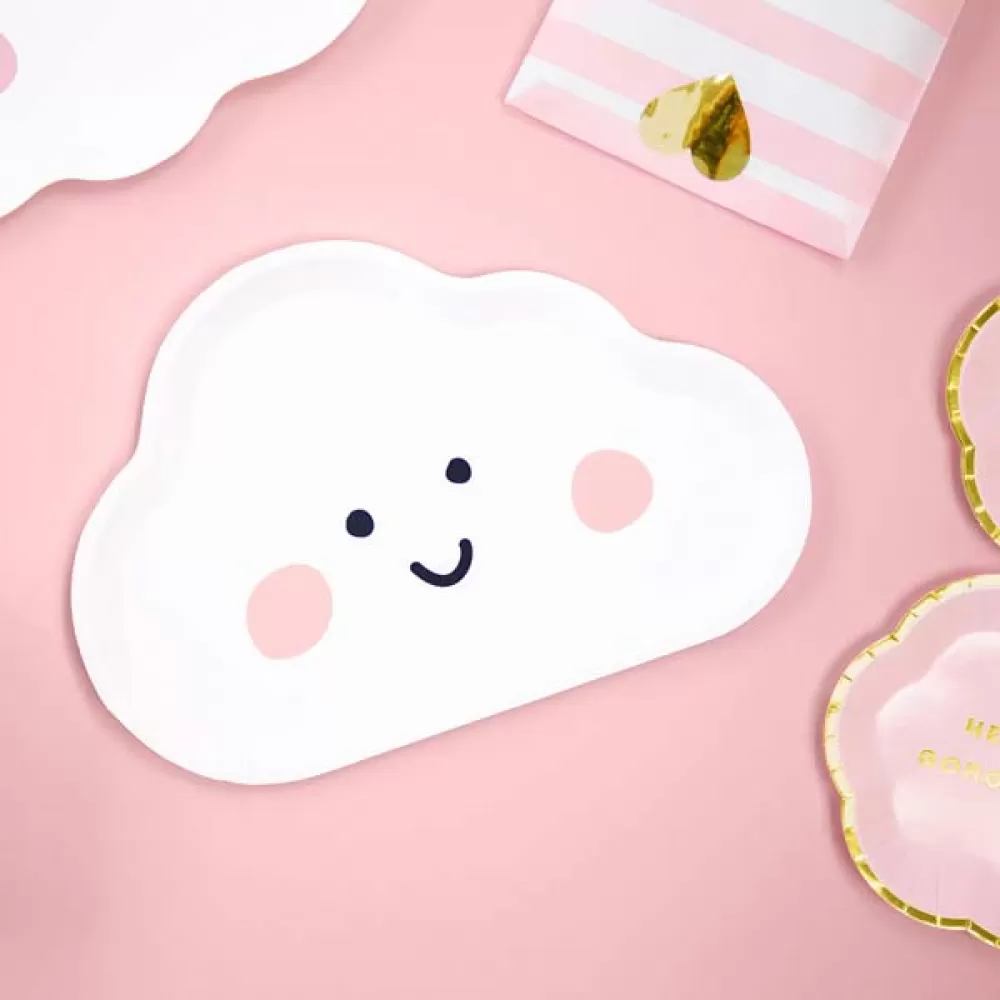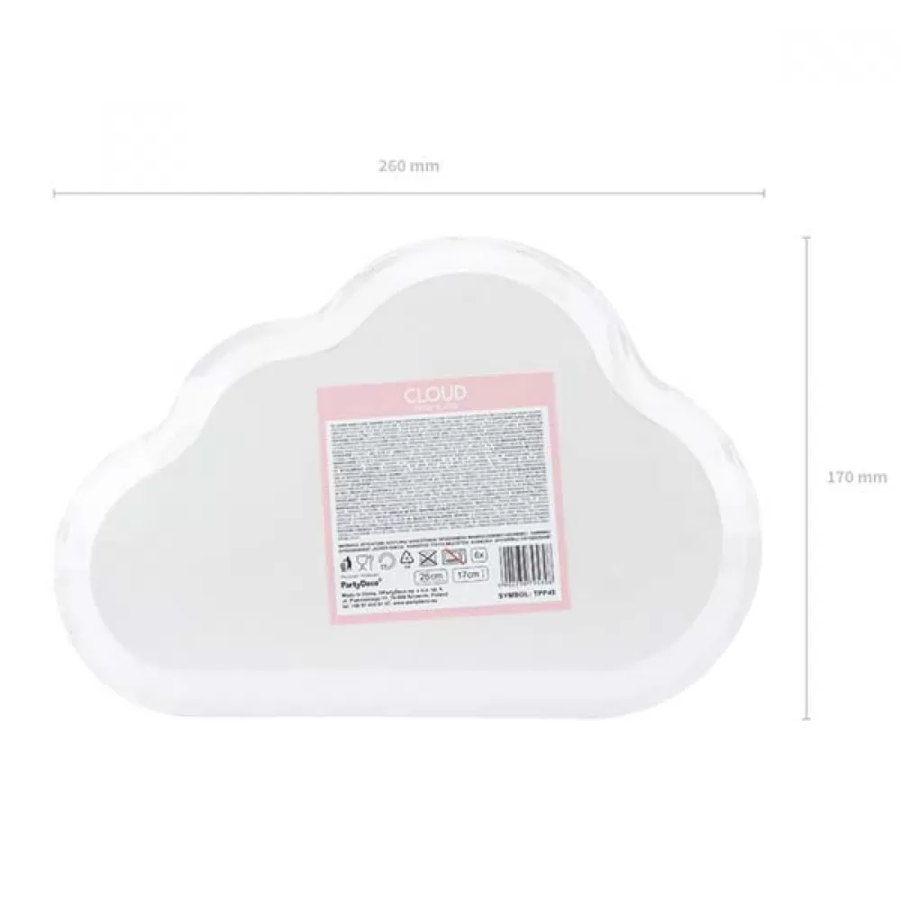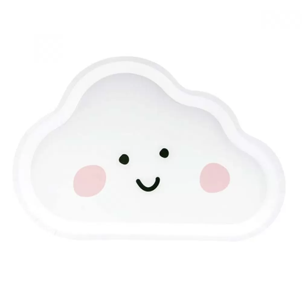 - Одноразовые бумажные тарелки в форме маленького облачка с улыбкой и румянцем на щечках.