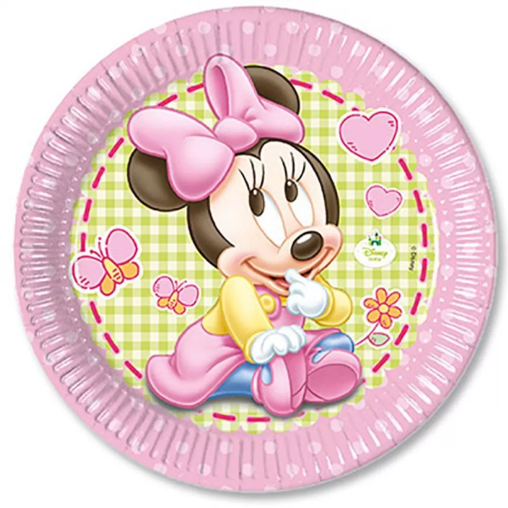 - Тарелки одноразовые праздничные с малышкой Минни. В упаковке 8 больших ламинированных бумажных тарелок «Малышка Минни».