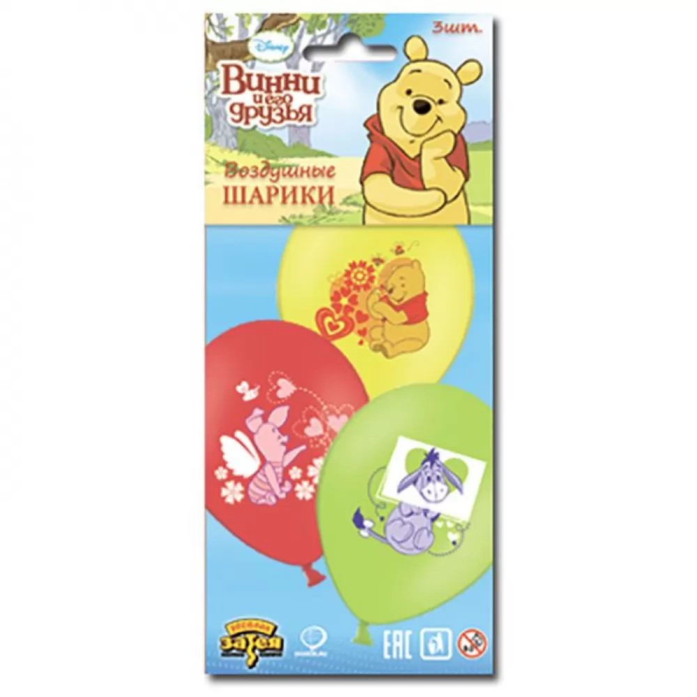 - В наборе 3 шарика разного дизайна (ассорти) с цветным изображение Винни Пуха и его друзей.