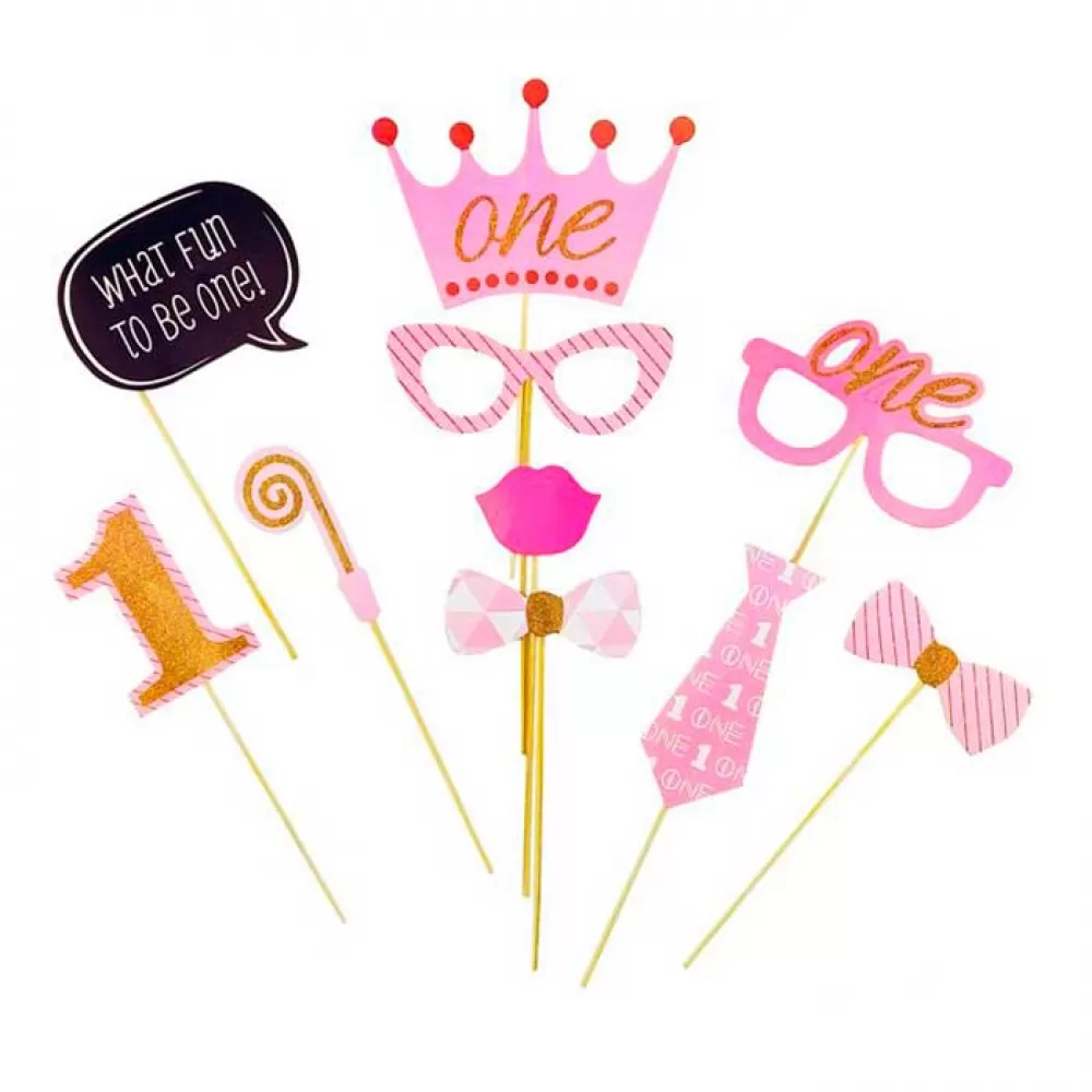 В наборе фотобутафории «1 год Девочке» 10 ярких тематических картинок для первого праздника малышки. Состав: бумага, бамбуковые шпажки. В набор входят:
