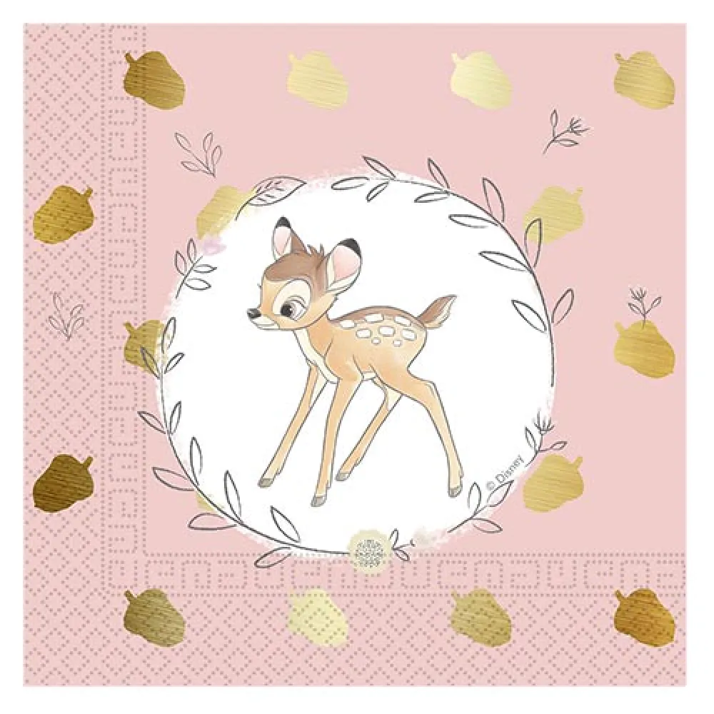 - В упаковке 20 бумажных салфеток с олененком Бэмби с золотистым тиснением.