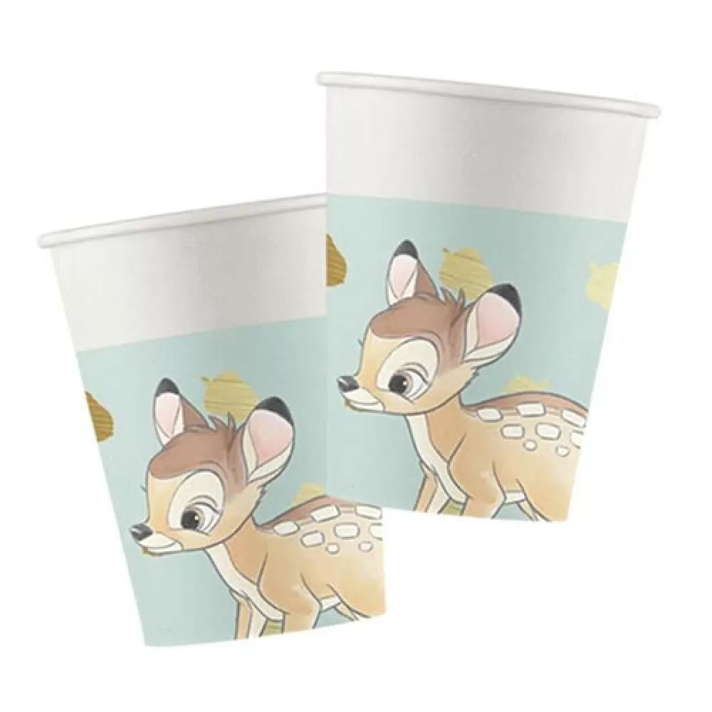 - В упаковке 8 бумажных стаканов с олененком Бэмби с золотым тиснением.