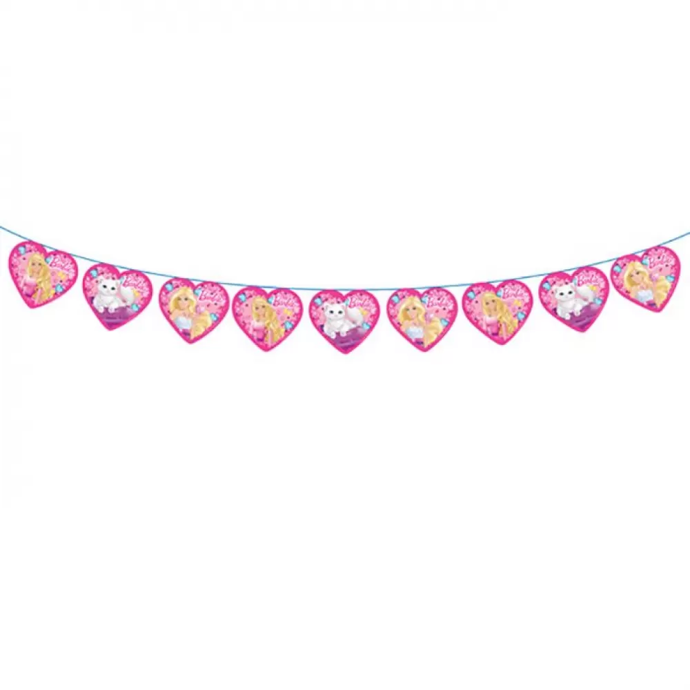 - Гирлянда «Барби» длиной 3 м изготовлена из бумаги, имеет высоту флажков 18 см.