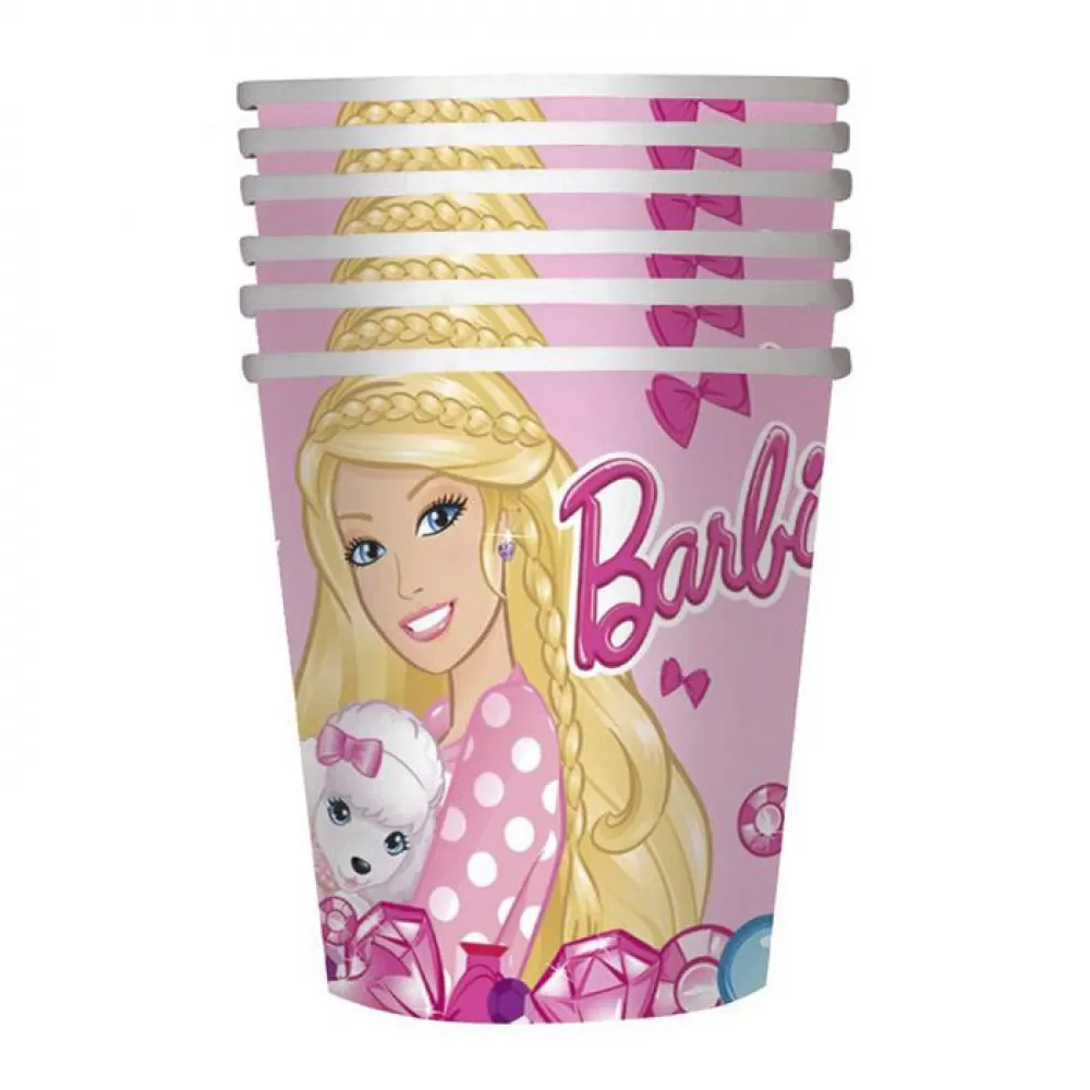 - Одноразовые стаканы «Барби» с ярким украсят праздничный стол и поднимут настроение.