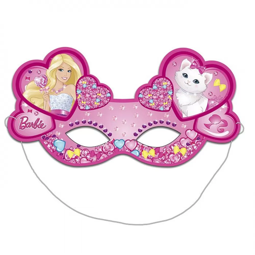 - Детская маска «Барби» на резинке размером 18х15 см изготовлена из плотной бумаги, декорирована ярким принтом.