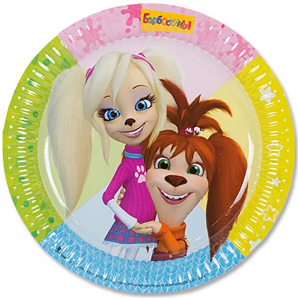 - Большие одноразовые бумажные тарелки Барбоскины с Лизой и Розой, в наборе 6 бумажных тарелок.