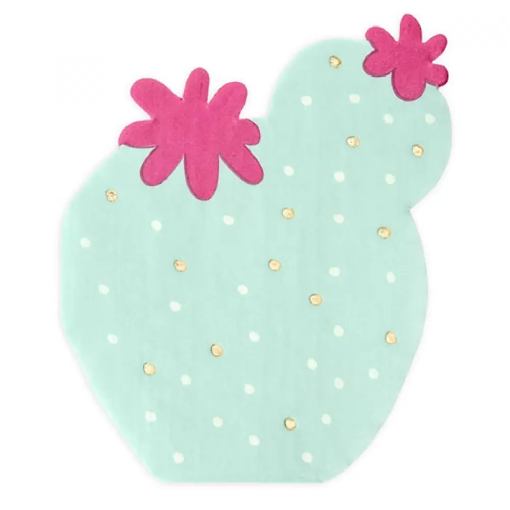 - В упаковке 20 бумажных фигурных салфеток в форме кактуса, мятного зеленого цвета с фольгированными элементами.
