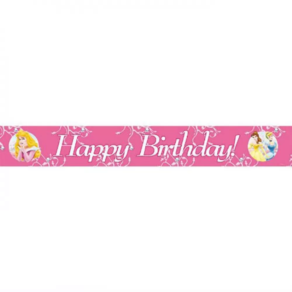 - Пластиковый баннер с изображением Принцессы Авроры, Бэлль и Золушки и надписью «Happy Birthday».