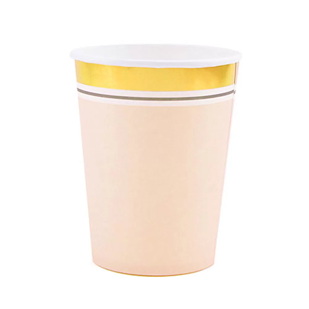 - Бумажные стаканы Цветы нежно-розового цвета с фольгированной золотой отделкой по краю.