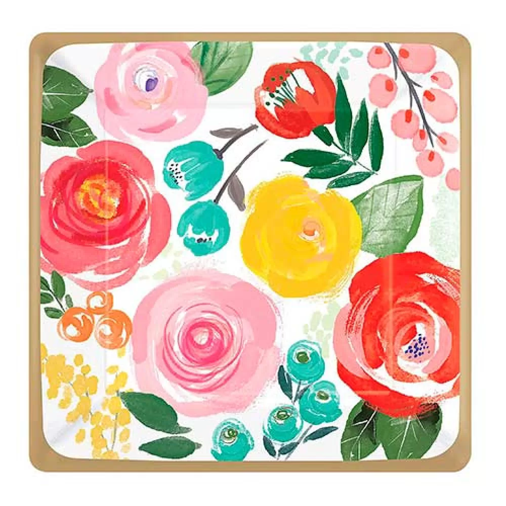 - Тарелки одноразовые Цветочный вальс, в упаковке 8 бумажных квадратных тарелок с цветочным принтом.